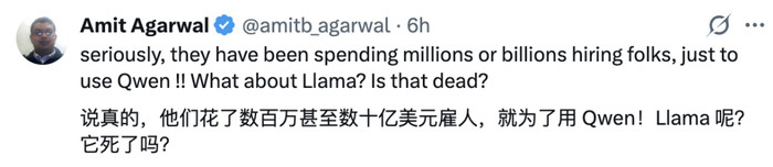 但社交媒体上,网友们对Meta花上亿美元挖角的员工们选择套壳Qwen开源模型进行了大量调侃。